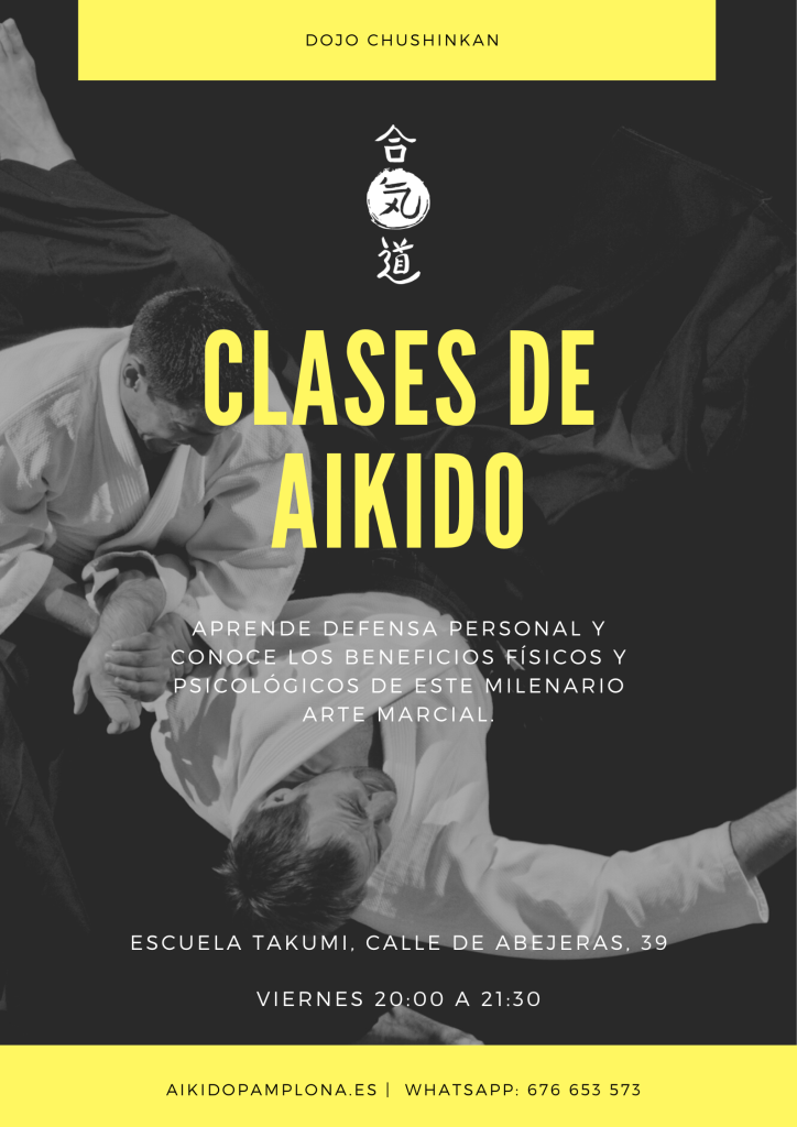 Somos un grupo de aikidokas apasionados por este arte marcial, en su faceta de defensa personal y en los numerosos beneficios que tiene para la salud y el desarrollo personal. Los orígenes del grupo se remontan al año 2007, cuando comenzamos a practicar en el Centro On Fitness de Pamplona (La Morea Cordovilla). En octubre de 2021 nos hemos trasladado a la Escuela Takumi de Pamplona en C/ Abejeras 39, donde contamos con un tatami que, por sus dimensiones y calidad nos permite practicar esta actividad en un marco inmejorable.